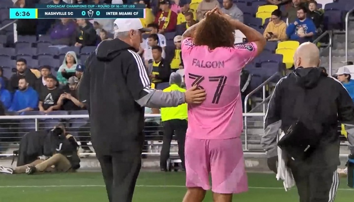 03月12日讯 美冠杯1/8总决赛 首局 ,迈阿密国际客战纳什维尔。开场7分钟,法尔肯伤退,卢扬后备 登场。