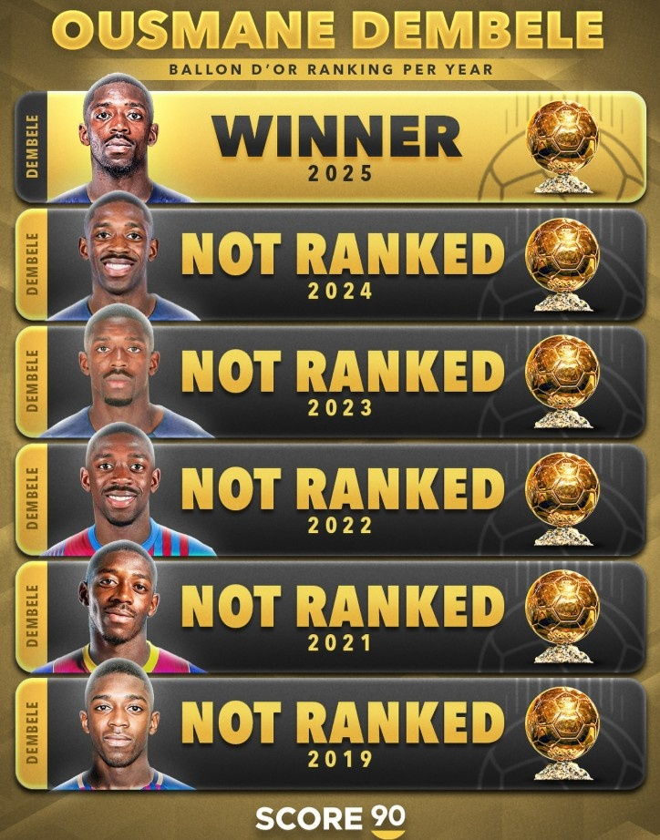 9月23日讯 在不久前结束的金球奖颁奖典礼,登贝莱加冕2025年金球奖。