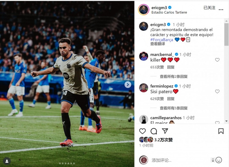 补射破门!埃里克-加西亚社媒:出色 的反转 展现了韧性和斗志