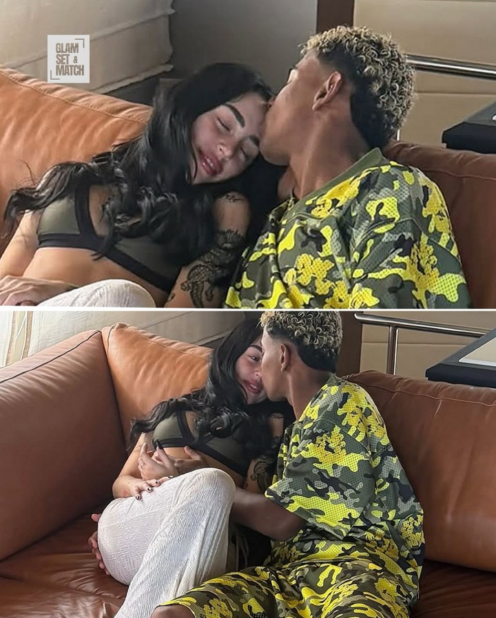 在照片里,亚马尔搂着穿着风凉的女友卿卿我我,随后对着额头一顿热吻。