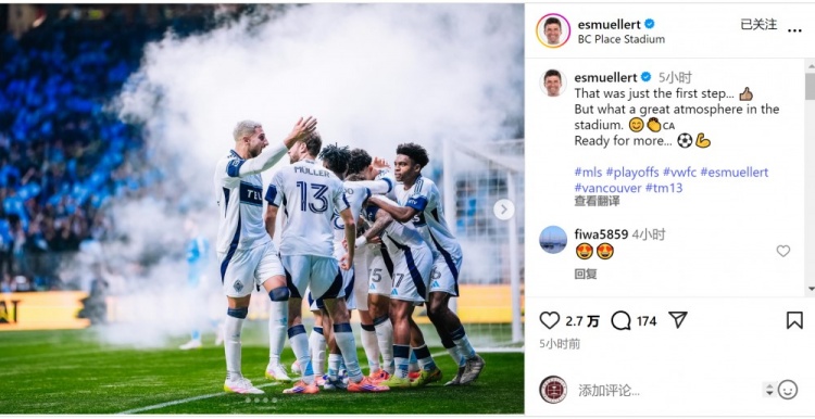 点射破门!穆勒社媒庆祝季后赛首胜:这只是第一步