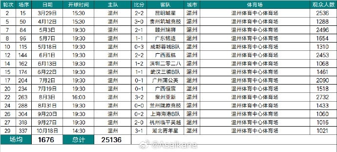 2025中乙职业联赛 温州队现场观赛人群 人数统计:合计25136人次,场均1676人。