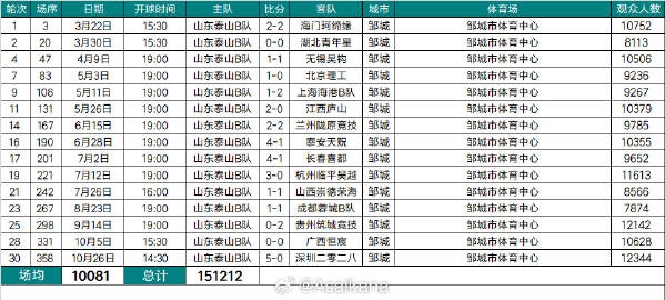 2025中乙职业联赛 山东泰山B队现场观赛人群 人数统计:合计151212人次,场均10081人。
