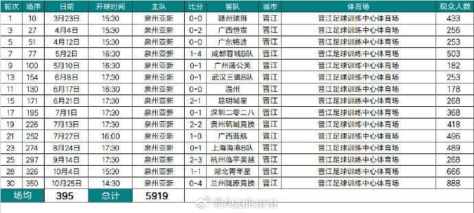 2025中乙职业联赛 泉州亚新队现场观赛人群 人数统计:合计5919人次,场均395人。