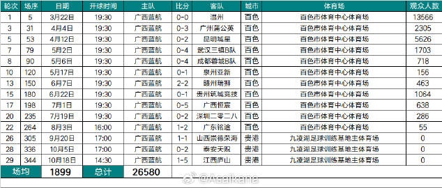 2025中乙职业联赛 广西蓝航队现场观赛人群 人数统计:合计26580人次,场均1899人。