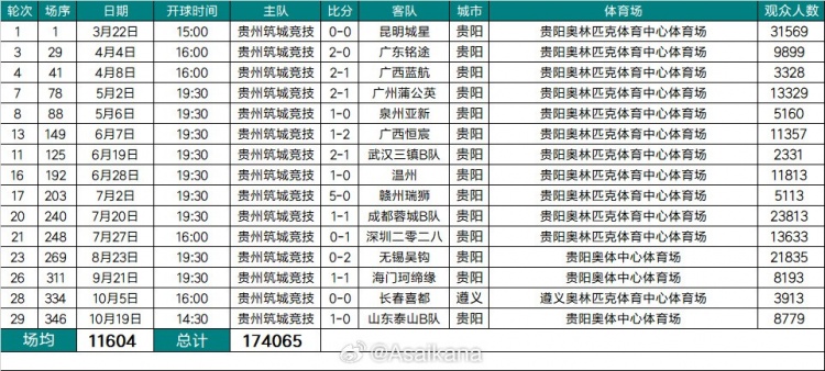 2025中乙职业联赛 贵州筑城竞赛 队现场观赛人群 人数统计:合计174065人次,场均11604人。