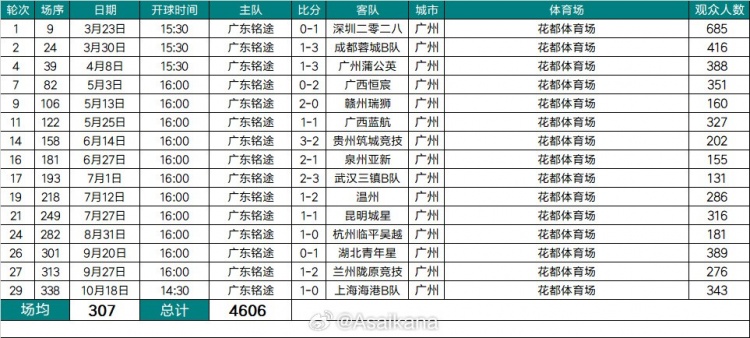2025中乙职业联赛 广东铭途队现场观赛人群 人数统计:合计4606人次,场均307人。