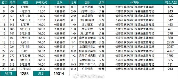 2025中乙职业联赛 长春喜都队现场观赛人群 人数统计:合计19314人次意甲新闻搜狐体育,场均1288人。