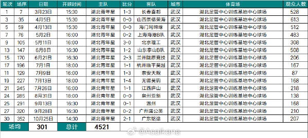 2025中乙职业联赛 湖北青年星队现场观赛人群 人数统计:合计4521人次,场均301人。