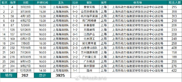 2025中乙职业联赛 上海海港B队现场观赛人群 人数统计:合计3925人次,场均262人。