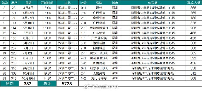 2025中乙职业联赛 深圳二零二八队现场观赛人群 人数统计:合计5728人次,场均382人。