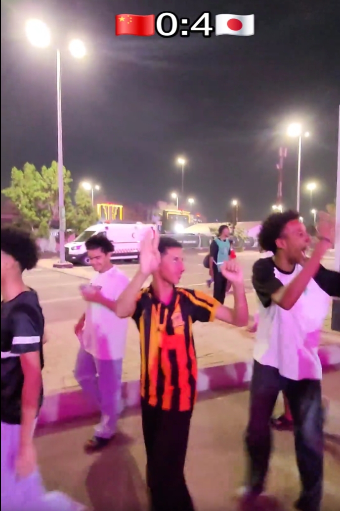 前往现场观赛的球迷“Mr-Q”在社媒晒出了一段视频,视频中,英超直播几名沙特当地的球迷朝中国球迷怪叫,并且比出0-4的手势进行嘲讽。
