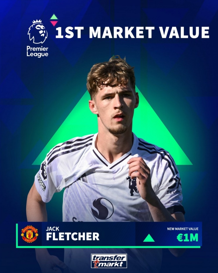 12月29日讯 德国转会市场更新18岁曼联中场球员杰克·弗莱彻的身价,他的身价为100万欧元。
