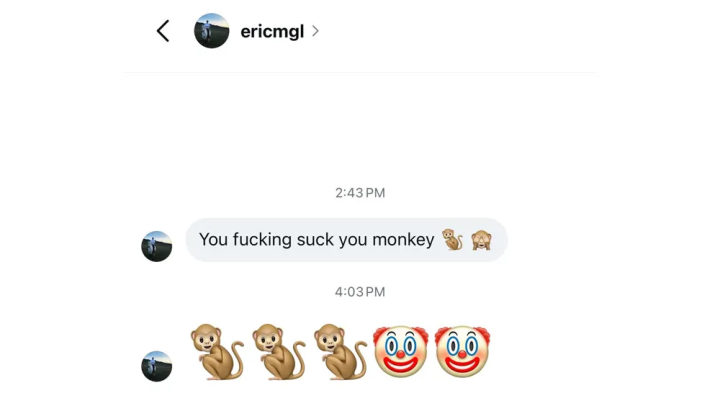赛后,他在社交媒体上遭遇了种族主义的私信辱骂。