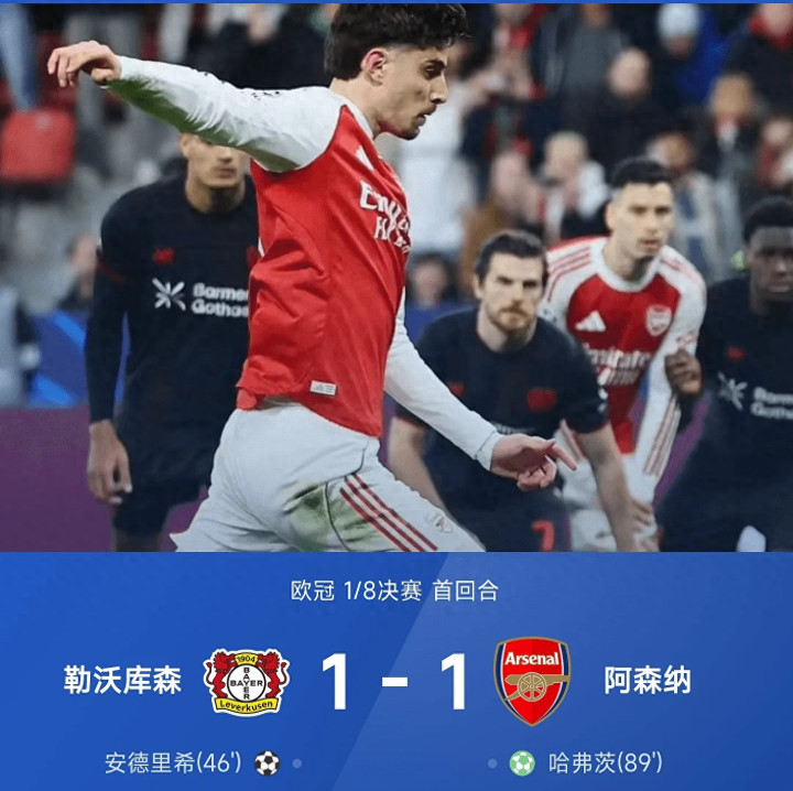 阿森纳在25/26赛季欧冠1/8总决赛 首局 客场应战 1-1战平勒沃库森,没能在客场应战 抢占晋级下一轮 先机,次局 回到伦敦还要背水一战,赛后主指导教练员阿尔特塔的发言里满是对细节错误 的惋惜,还有对球队执行不到位的无奈。