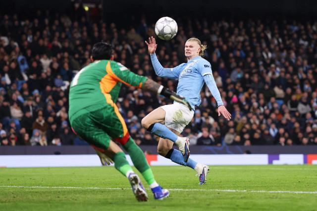 哈兰德的竞技状态 究竟有多差?开场不久,左路努里就给了一记漂亮的传中,空门,哈兰德纵身一跃,顶偏了。没关系,多库随后中圈附近送出直传,哈兰德最喜欢这种要带点冲刺跑 的单刀赴会,挑射中鹄。接着多库又游龙闯进危险区域 ,突然分给谢尔基,客队一众后场球员围观,目送皮球挂网。