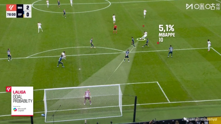 西甲转播给出数据,姆巴佩射球 前只有5%的得分 机会,英超直播在线高清(无插件)最终姆巴佩瞄远打近,守门员几乎没有反应。
