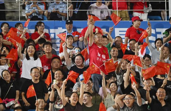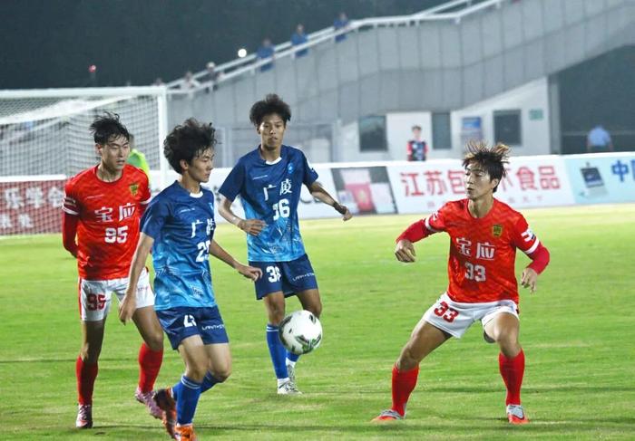 热闹要数宝应主场作战 。但见榆林球迷挥动丈八旗幡,万余人齐声呐喊“宝应包赢”!33分钟,宝应队33号王康伟率先破门;77号孙逸文连进两球,10号杨杰锦上添花,最后18号郭伟锁定胜局。六比零的比分配上震天助威声,真的是“主场作战 龙遇风云便化蛟”!