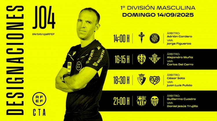 直播吧9月13日讯当地时间周日(9月14日)进行的西甲第4轮四场赛事 裁判 已经确定,英超免费高清直播具体任命如下: