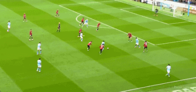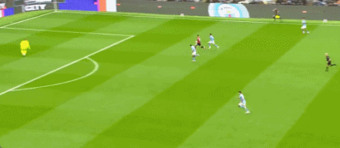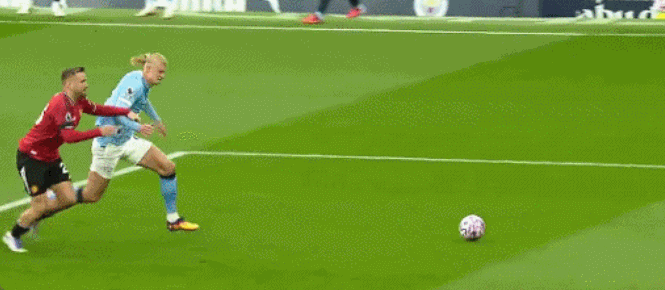 第68分钟,曼联球员再次错误 ,马奎尔传送球 被断,哈兰德超级单刀赴会推射破门,帮助曼城3-0扩大领跑 优势。