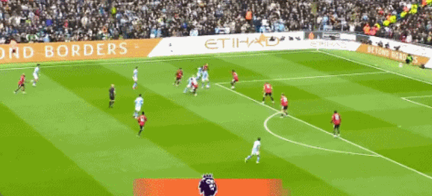 上半场结束,曼城暂时1-0领跑 曼联。