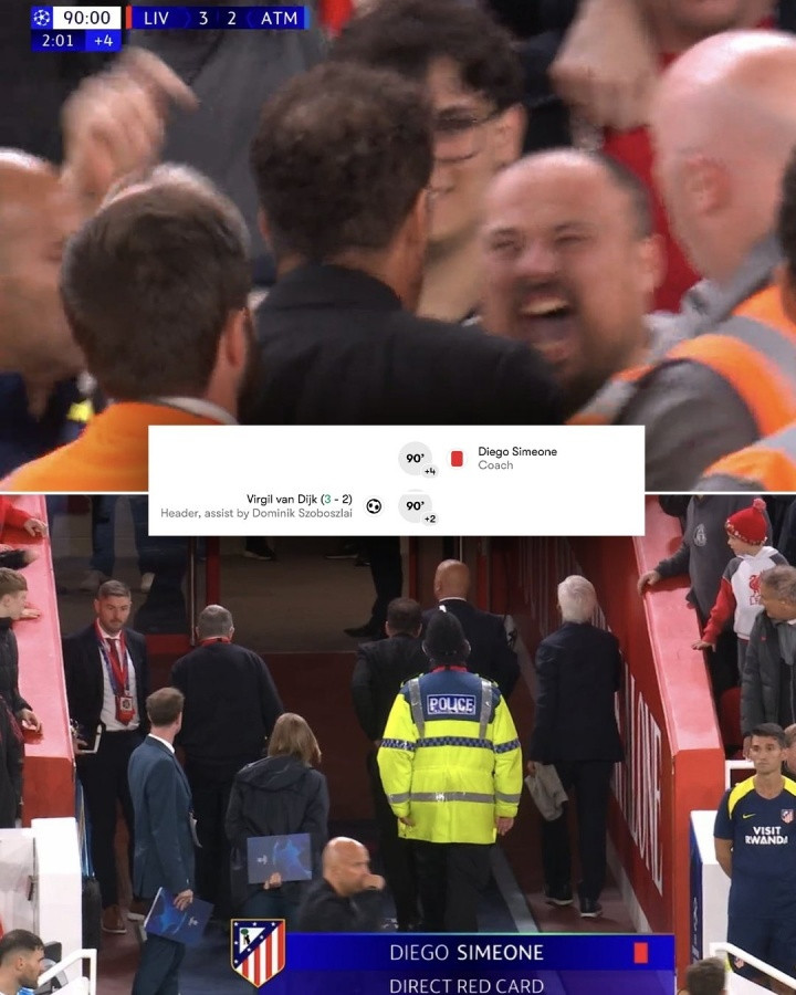 欧冠职业联赛 阶段第一轮,马竞客场应战 2-3遭利物浦致胜球 ,主指导教练员西蒙尼还在最后时刻与球迷发生冲突被驱逐 罚下。