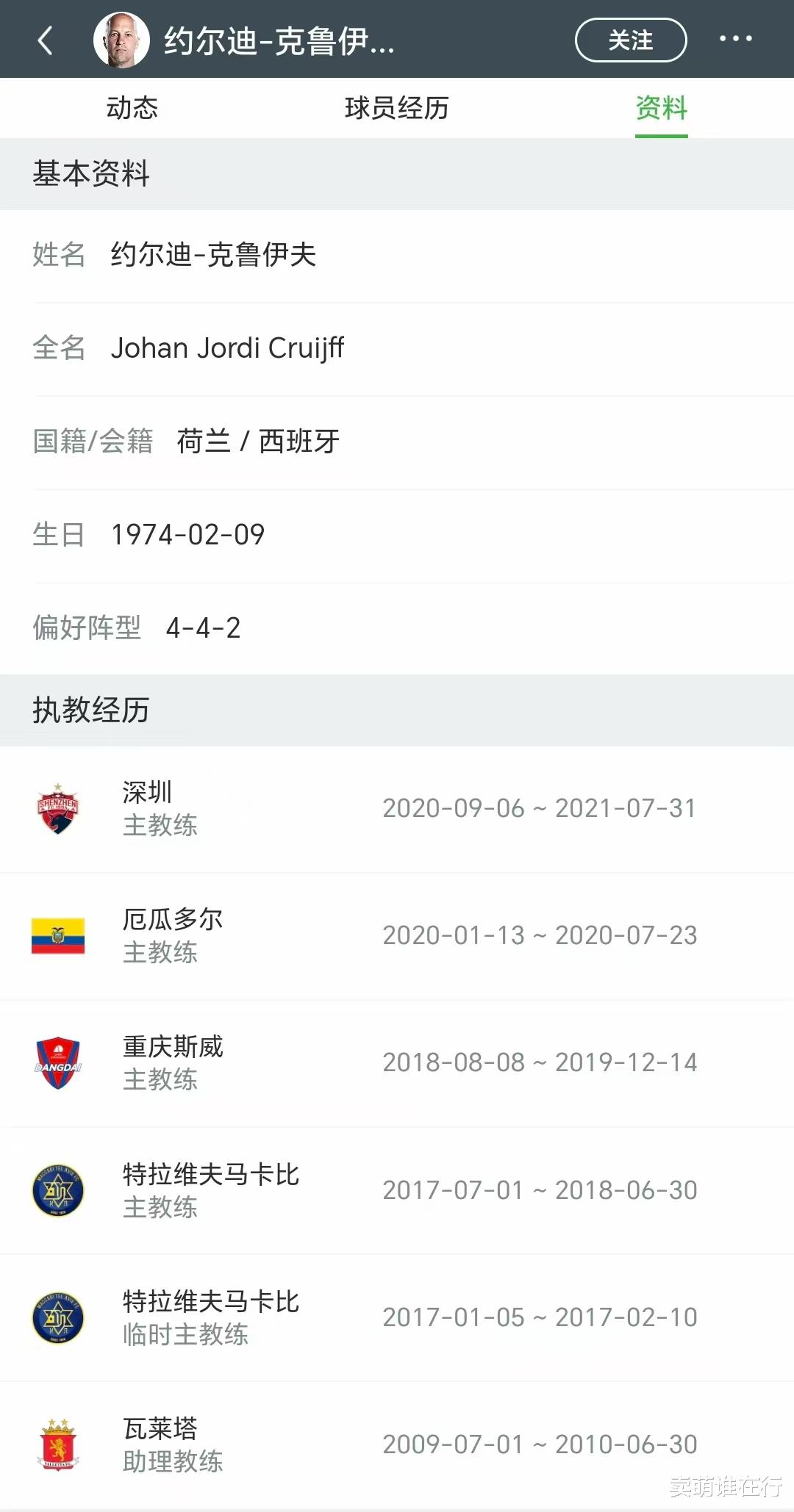 小克鲁伊夫在特拉维夫马卡比和巴萨的经历证明了,他是个不错的体育总监人选。但他在特拉维夫马卡比当主指导教练员的那一年,让职业联赛 霸主丢掉第一名 宝座。他短暂执教厄瓜多尔国家队又赶上疫情,就没带队打过正式赛事 。