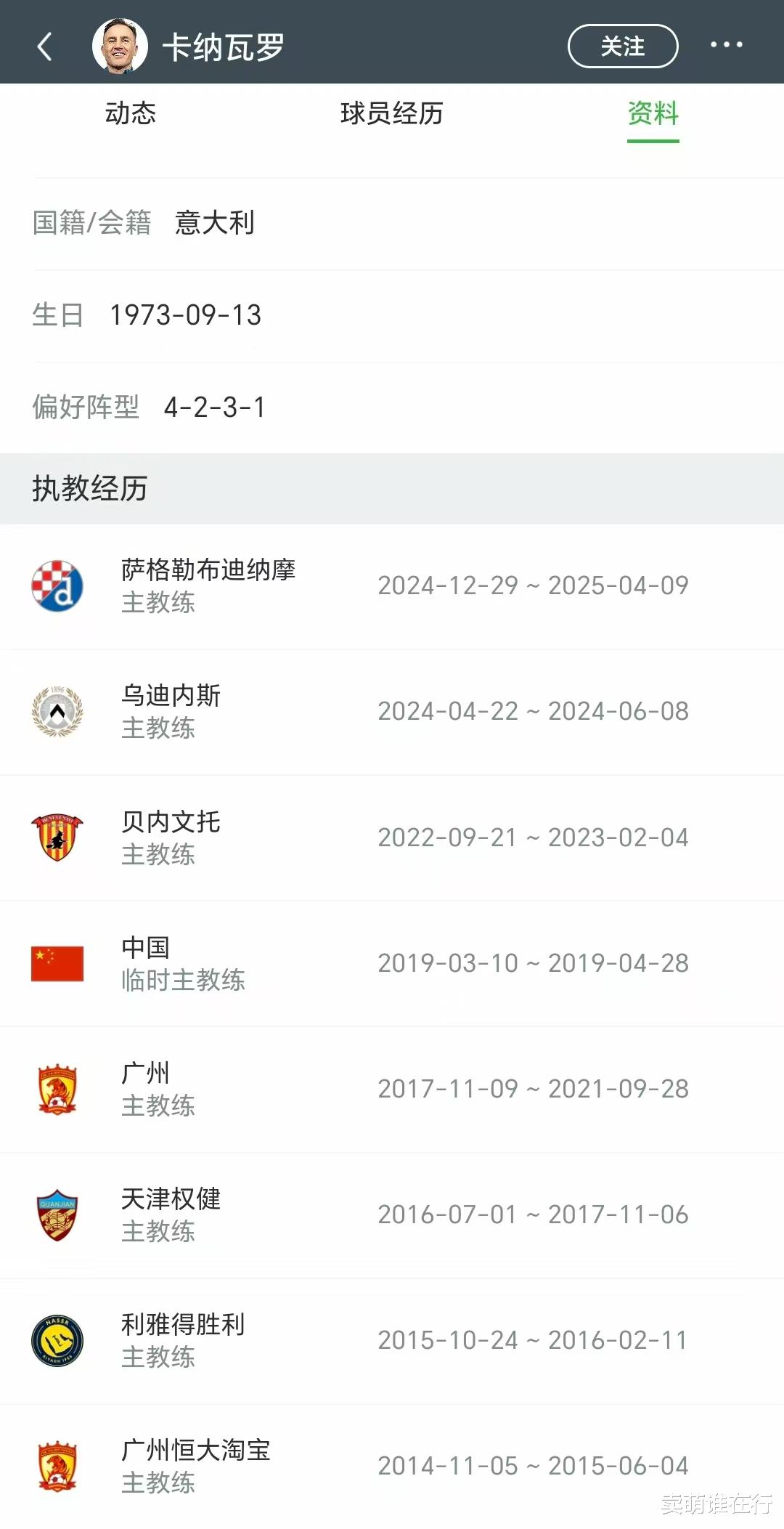 卡纳瓦罗离开中国后,三次在欧洲拿起教鞭,执教都没有超过5个月。