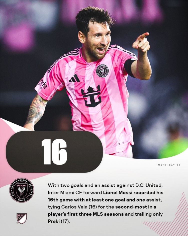 梅西还激活其他一些里程碑。比如梅西加盟迈阿密国际后第16场职业联赛 有传射,前三个赛季就追平卡洛斯·贝拉,职业联赛 第二,仅次于17场的普雷基。显然,降维打击而且被报道至少续约到2027年的梅西肯定会破记录 ,而且拉开到无法被接近的高度。