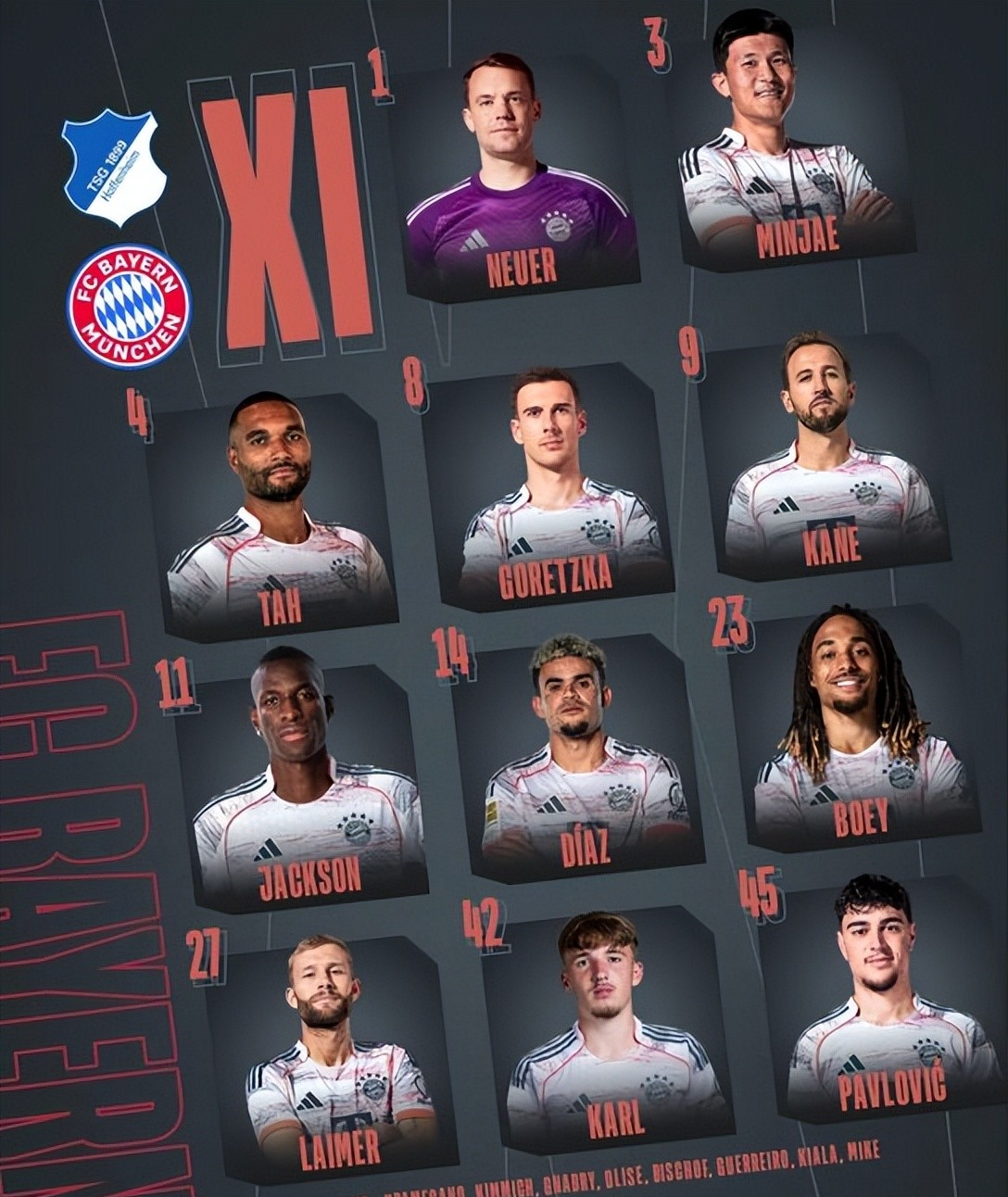 在25/26赛季德甲职业联赛 第4轮的赛事 中足球新闻网易,积分榜排名第1的蝉联第一名 第一名 拜仁作客内卡竞赛 场应战 前3轮过后2胜1负暂居第六的霍芬海姆。