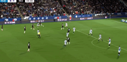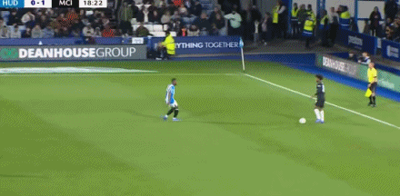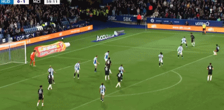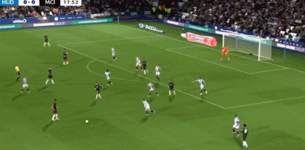 第18分钟,撞墙协作 !穆卡萨助功 福登贴地斩破门!哈德斯菲尔德0-1曼城