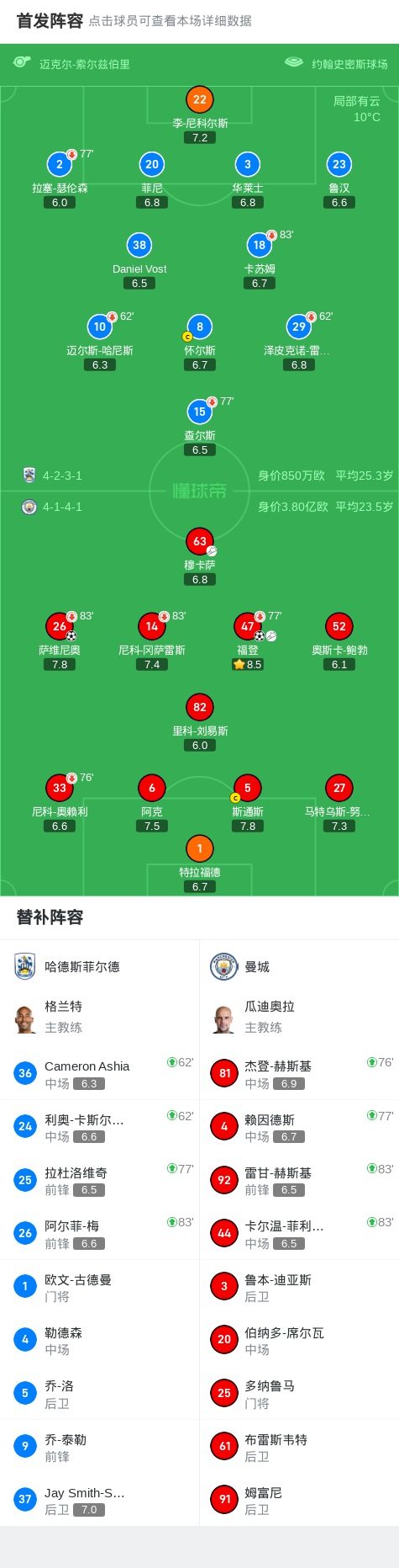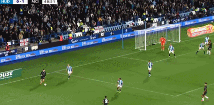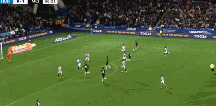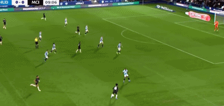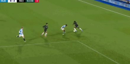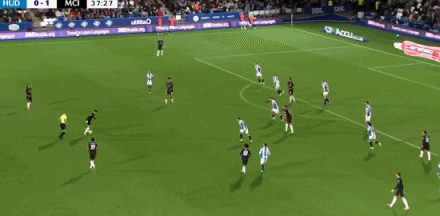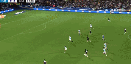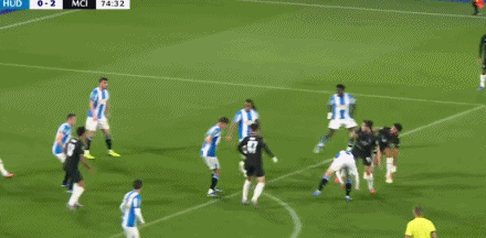第74分钟,福登送出助功 ,萨维尼奥劲射破门!哈德斯菲尔德0-2曼城