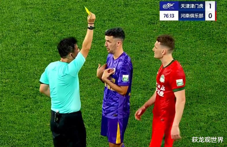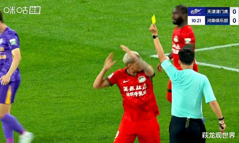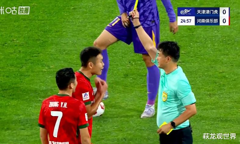 上半场双方战成0-0,主裁判 共出示5张警告 ,河南队4张,津门虎1张,球迷调侃:“新卡牌大师出现了!”