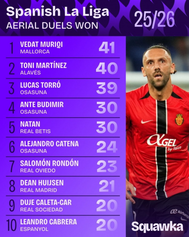 直播吧10月7日讯日前,Squawka统计了本赛季西甲争顶成功次数排行,英超直播赫伊森21次位居第八。