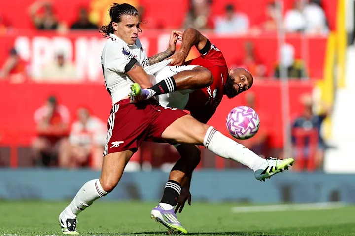 阿尔特塔选择卡拉菲奥里而非刘易斯-斯凯利担任左后场球员,这一决定在赛事 第13分钟收到回报。卡拉菲奥里抓住巴因迪尔抢救 底线球错误 的机会,英超直播顶球破门,打进制胜球。虽然防卫 端面对布赖恩·姆贝乌莫承受了不小压力,但关键得分 助其入选。